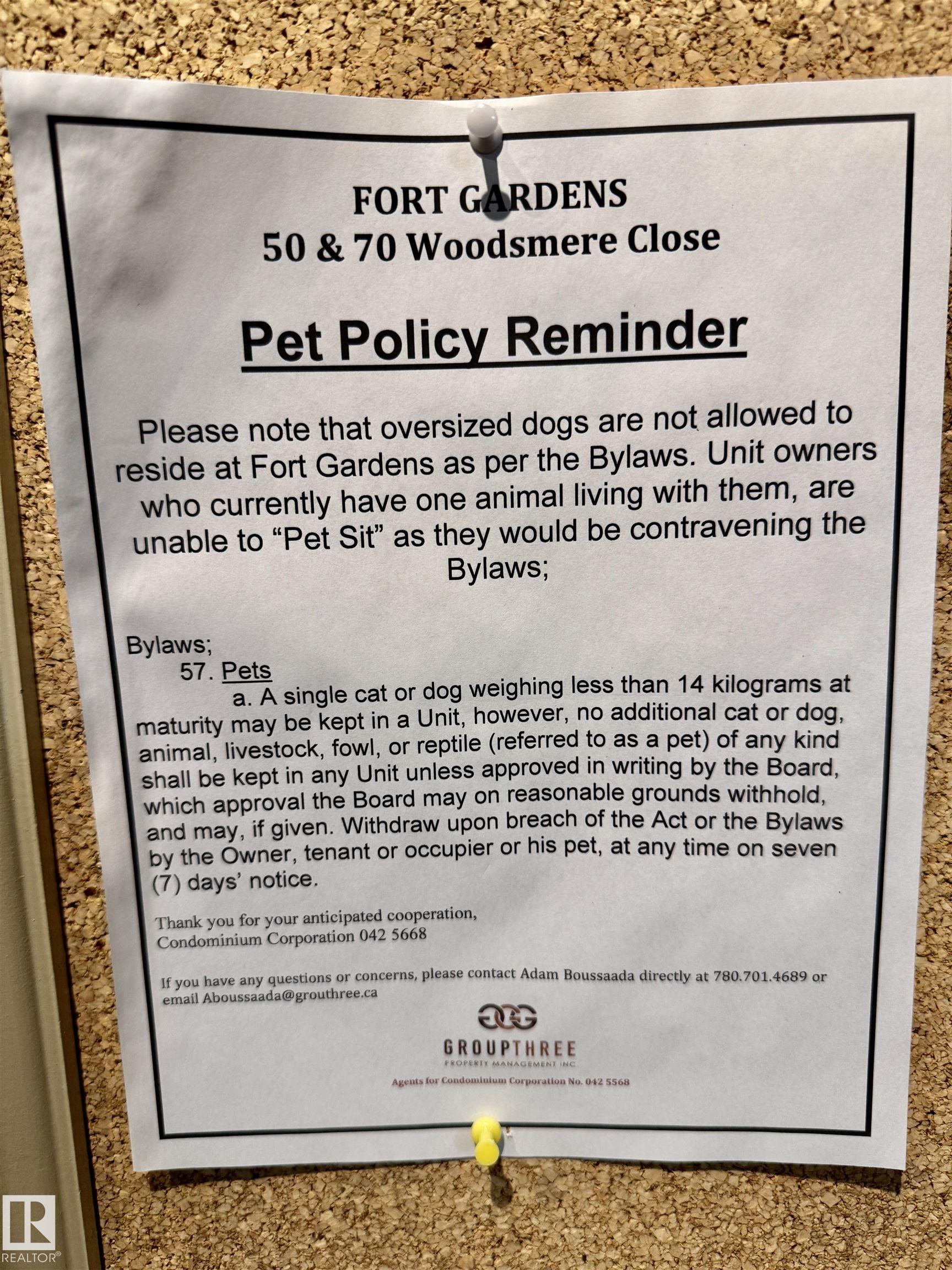 Best-Priced 2 bedroom unit in this complex! Immaculate top-floor unit features a bright, spacious & open floor plan. Kitchen has breakfast counter & stainless steel /black appliance package. There?s also a dining area & large living room with patio doors leading to a balcony. Primary bedroom is large enough for lots of furniture. It has a walk-through closet (with built-in cubbies) & a three -piece ensuite with linen storage. Second bedroom is also generously sized. Condo has in-suite laundry (with Samsung appliance package) & a four-piece bathroom. Enjoy the benefits of having one assigned stall, access to a well-equipped gym & living within walking distance to Westpark Shopping centre that offers grocery stores, restaurants, banks, drugstore & more! Well managed Fort Gardens is located along a network of walking trails & offers easy access to Sherwood Park & Edmonton. Fantastic value! 2nd energized stall can be purchased separately.