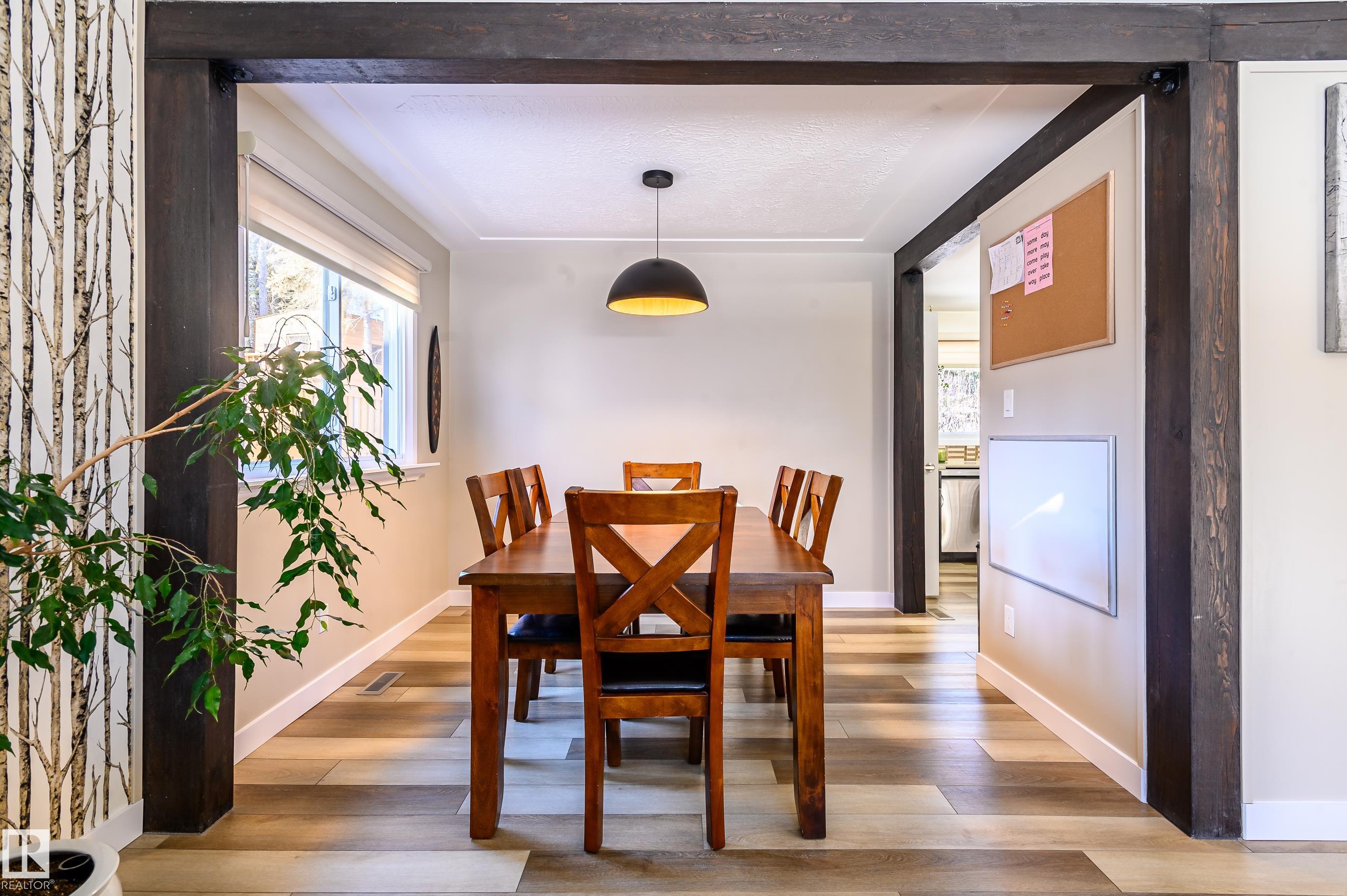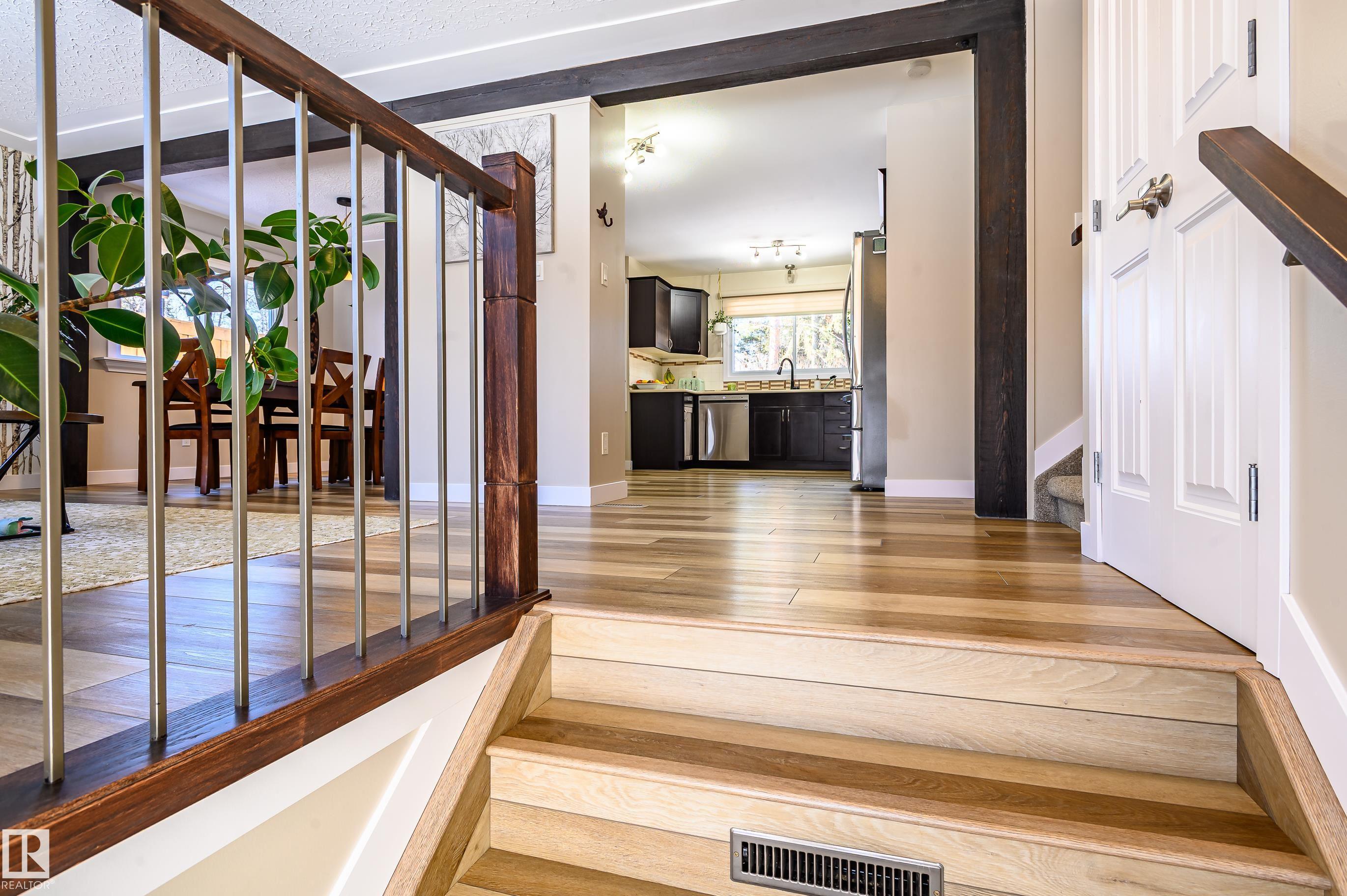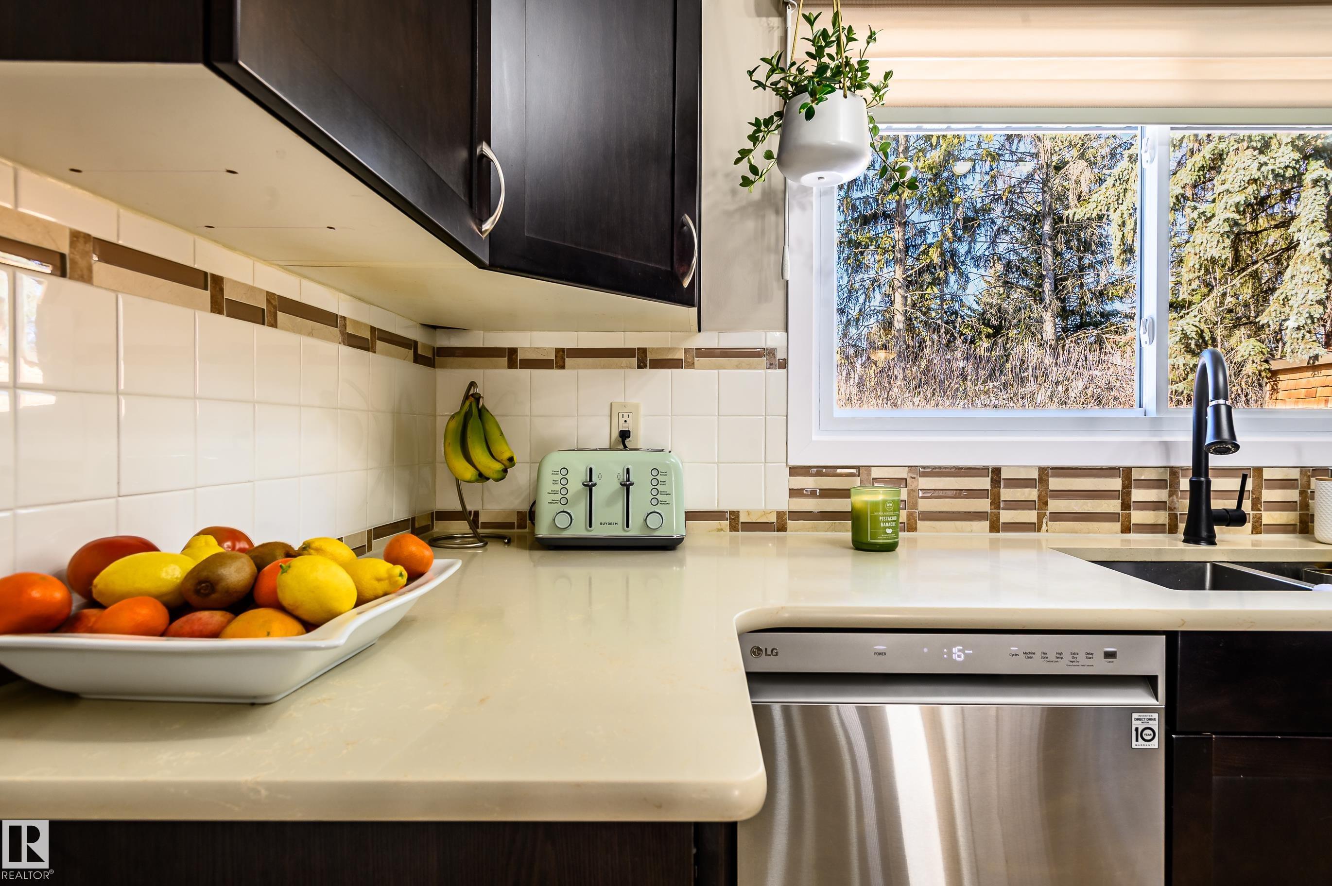 Thoughtfully upgraded 4 level split located on a quiet street surrounded by large, mature trees and a total of 1,783 sqft of living space. This inviting home blends comfort, functionality, and timeless character?ideal for families or those seeking flexible living space. A rear patio door opens onto a spacious back patio, perfect for entertaining or relaxing outdoors, complemented by a cedar garden box for those with a green thumb. Extensive upgrades provide peace of mind and efficiency, including a new furnace, heat pump, hot water tank, and upgraded attic insulation. Inside, the home has been refreshed with updated flooring throughout, a renovated kitchen, and updated bathrooms, highlighted by a main bath featuring a luxurious 6? soaker tub. A rare and convenient main level washer and dryer adds everyday practicality. Warm interior and exterior timber beam accents give the home a distinctive, craftsman inspired feel, while a brick accent on the front elevation beautifully complements the timber work.