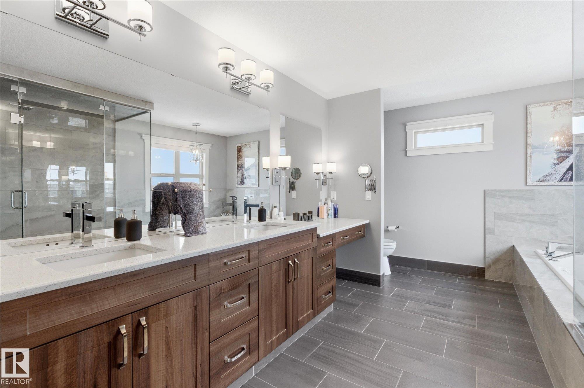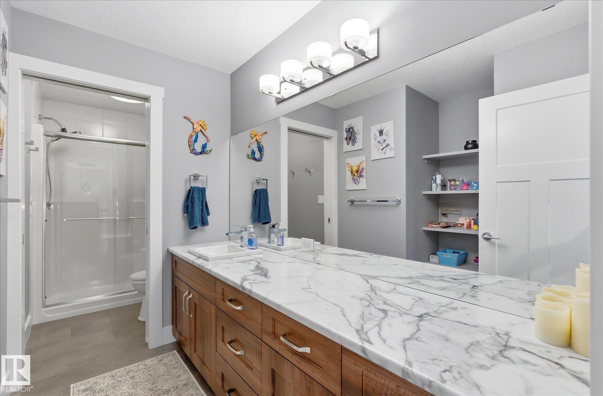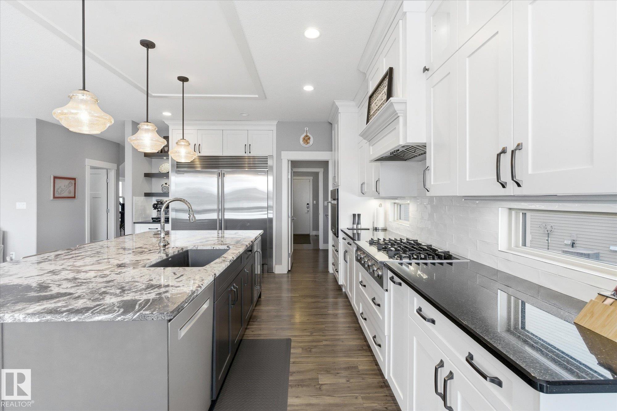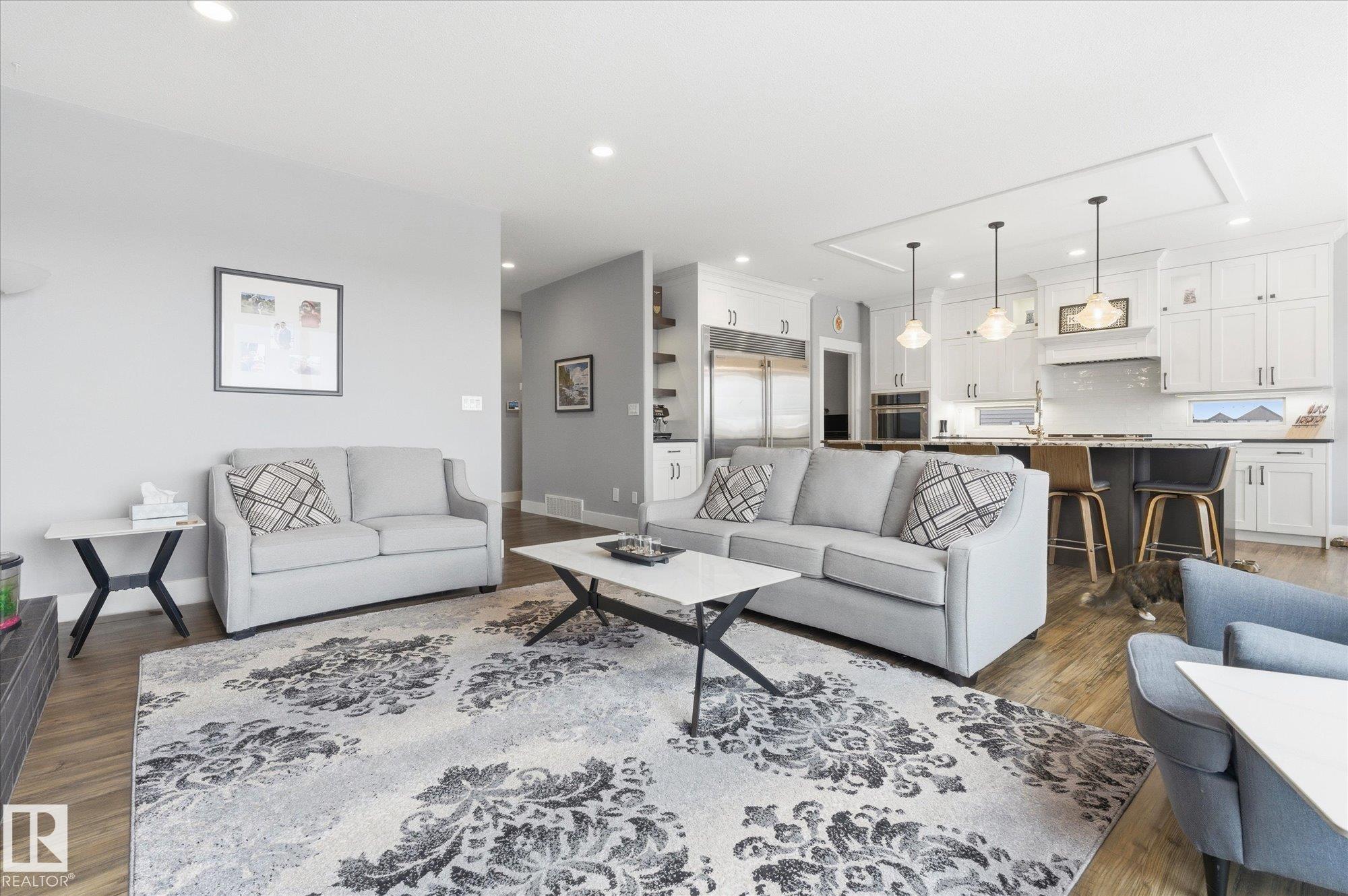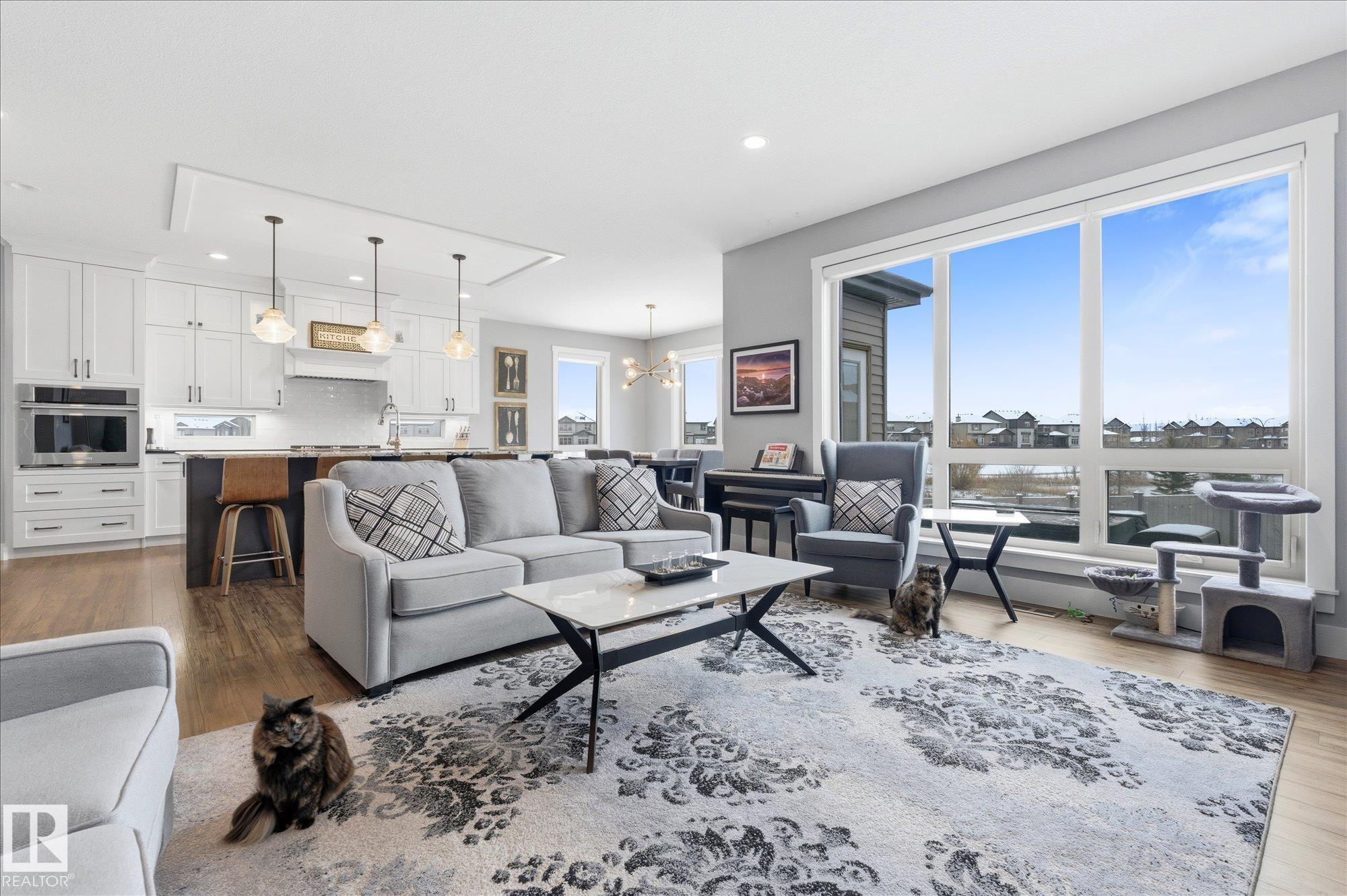 Functional sophistication meets elevated living in this fully finished & upgraded home. Over 2,800 sq.ft., this Western Living built property is designed for both everyday comfort & entertaining. Heart of the home is an exceptional chef?s kitchen featuring gas range, commercial-sized fridge, stone countertops, ceiling-height cabinetry, massive island, & walk-through pantry. Open-concept dining area is surrounded by windows showcasing serene greenspace views, while living room is anchored by stylish gas fireplace. Main floor den, mudroom with convenient dog wash, & thoughtful design details throughout complete the main level. Upstairs offers generously sized bedrooms, stunning primary retreat with spa-inspired ensuite, bonus room, & convenient second-floor laundry. Fully developed basement features impressive ceiling height, industrial-inspired finishes, soundproof theatre/gaming room, an additional bedroom, & full bath. Home features oversized heated garage (25'10"x27'5"), in-floor heat in basement, A/C