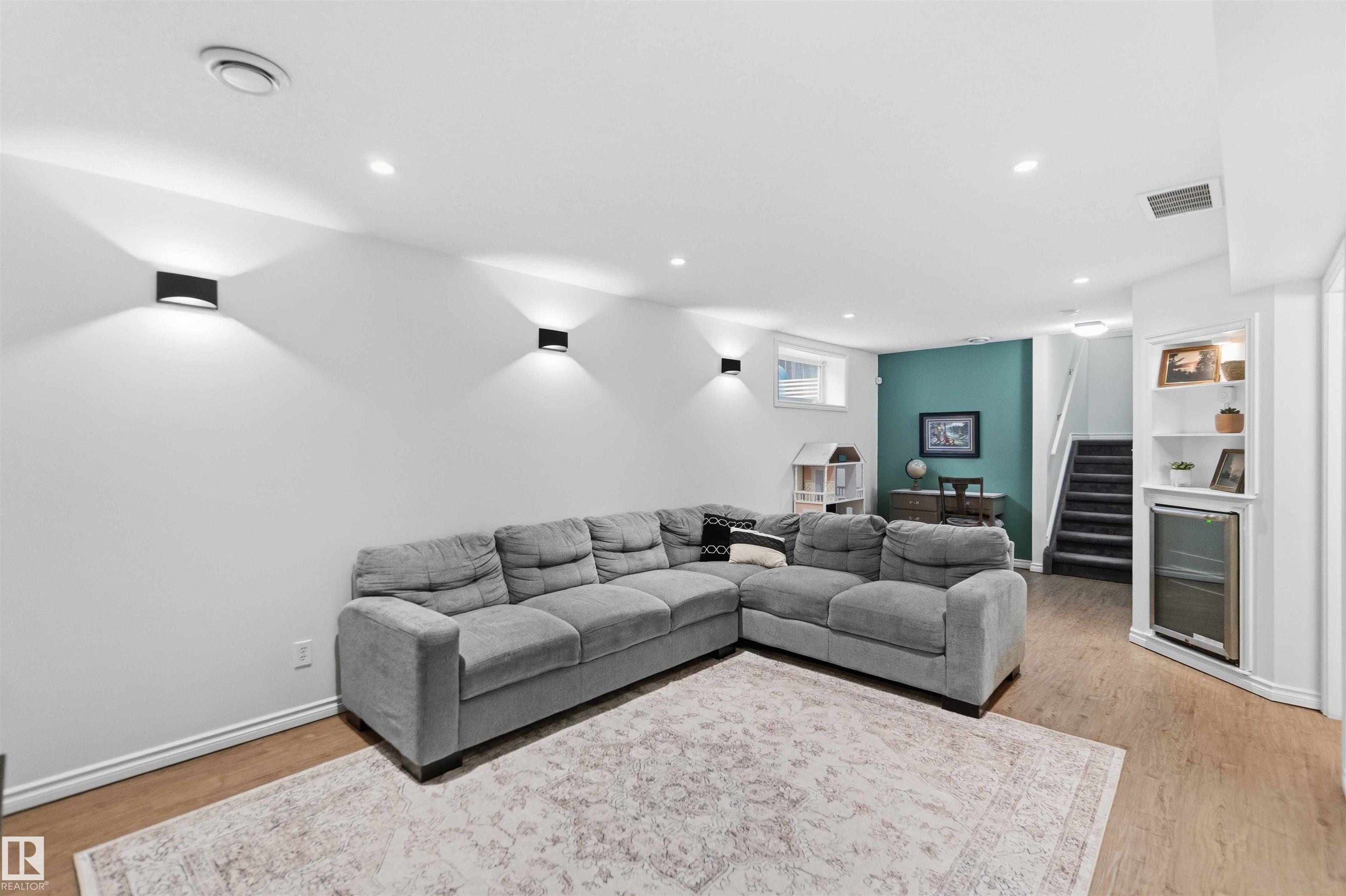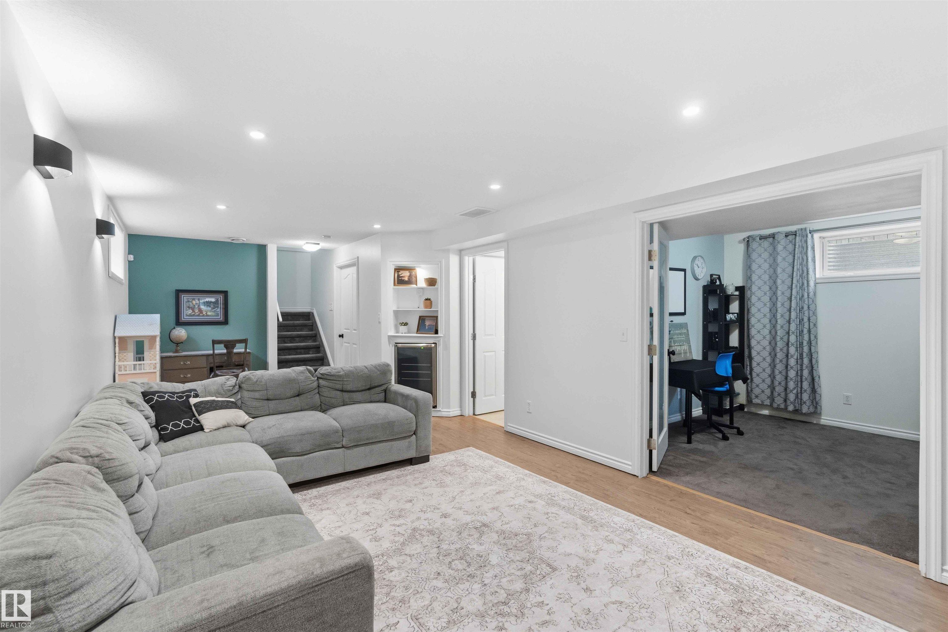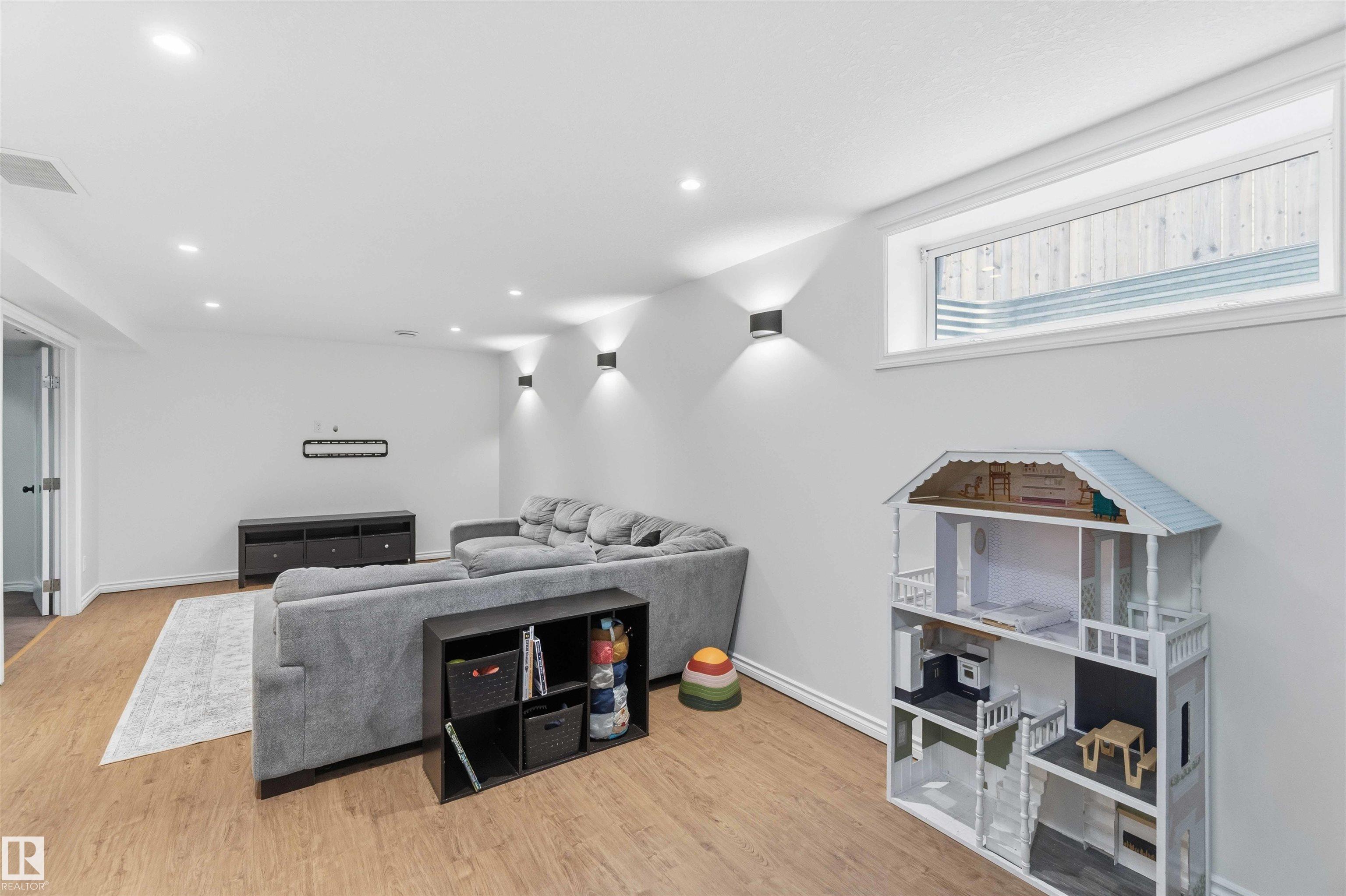 The perfect family home is here! This stylish 4-BDRM, 4-BATH home with a fully finished BSMNT is truly turn-key and ready for you to settle in. The bright living room features durable, modern laminate flooring, a cozy corner gas fireplace, and a lovely view of the backyard?perfect for everyday living and relaxing evenings. The open-concept kitchen shines with crisp white cabinetry, plenty of storage, and sleek stainless steel appliances. An open-to-above staircase fills the home with natural light and leads you upstairs to a spacious primary retreat with a full ensuite and park views, plus two generously sized BDRMS and another full bath. Downstairs, the fully finished BSMNT offers a large rec room, a fourth BDRM, and a full bath?perfect for guests or home office. Step outside and enjoy summer in your west-facing yard, while central A/C keeps you cool on those hot days. Located just steps from a skating rink, soccer field, and expansive green space. Freshly painted with a newer and brand-new shingles!