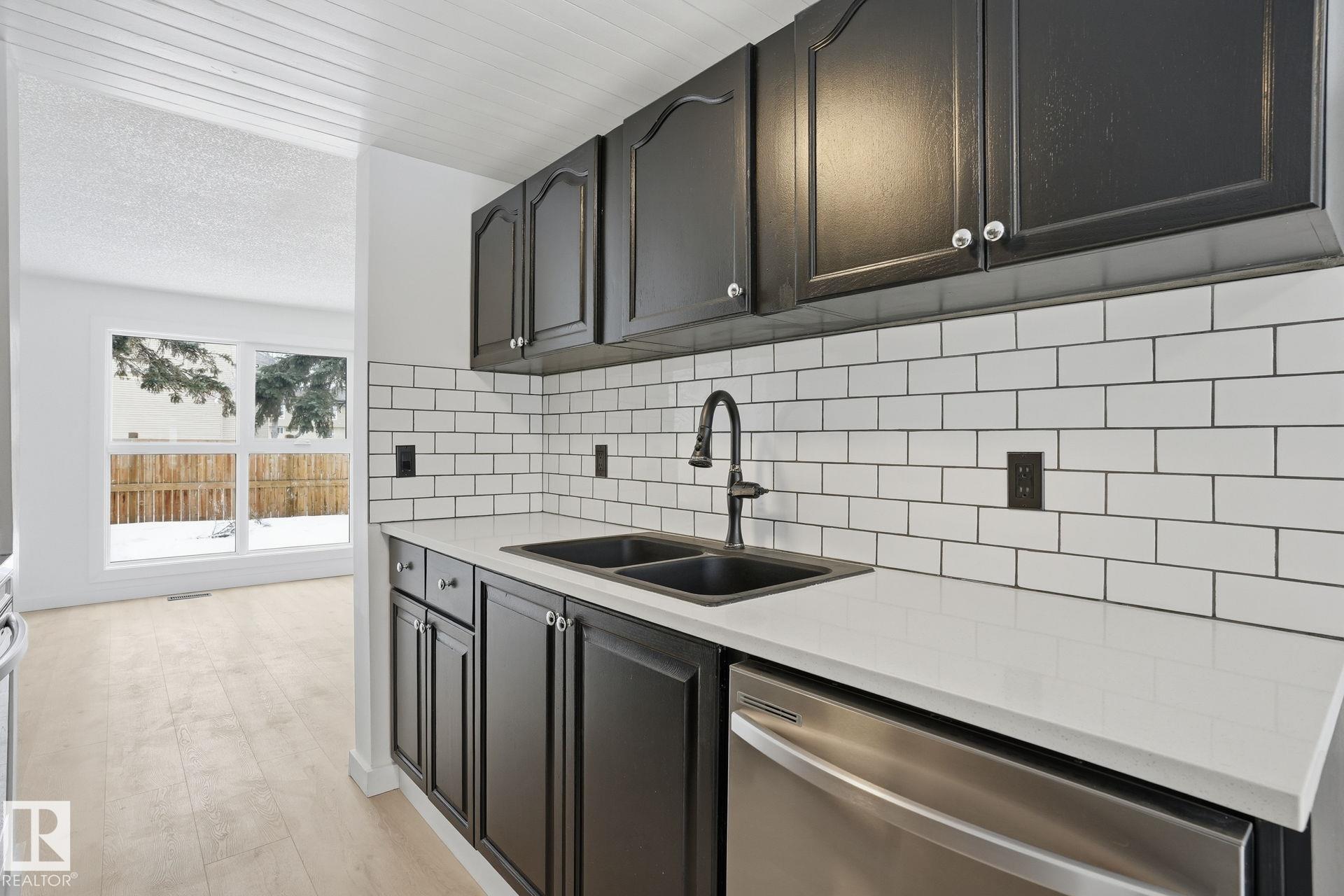 METICULOUSLY RENOVATED from top to bottom and truly move-in ready. This 2-bed, 1.5-bath townhouse offers over 1,000 sq. ft. of bright, modern living plus an unfinished basement for storage or future development. Enjoy a brand-new kitchen with new cabinetry, stone countertops, and all NEW APPLIANCES. Luxury vinyl plank flooring throughout, fully renovated bathrooms, fresh paint, trim, doors, and updated lighting from top to bottom. The big-ticket items are already handled, with a newer exterior, shingles, furnace, and hot water tank. Your own parking stall and low condo fees of only $247.86/month. Centrally located with quick access to the Yellowhead, Anthony Henday, and downtown, this home is ideal for first-time buyers looking for something turn-key or investors looking for a low-maintenance rental. Homes at this price with this level of finish are rare.